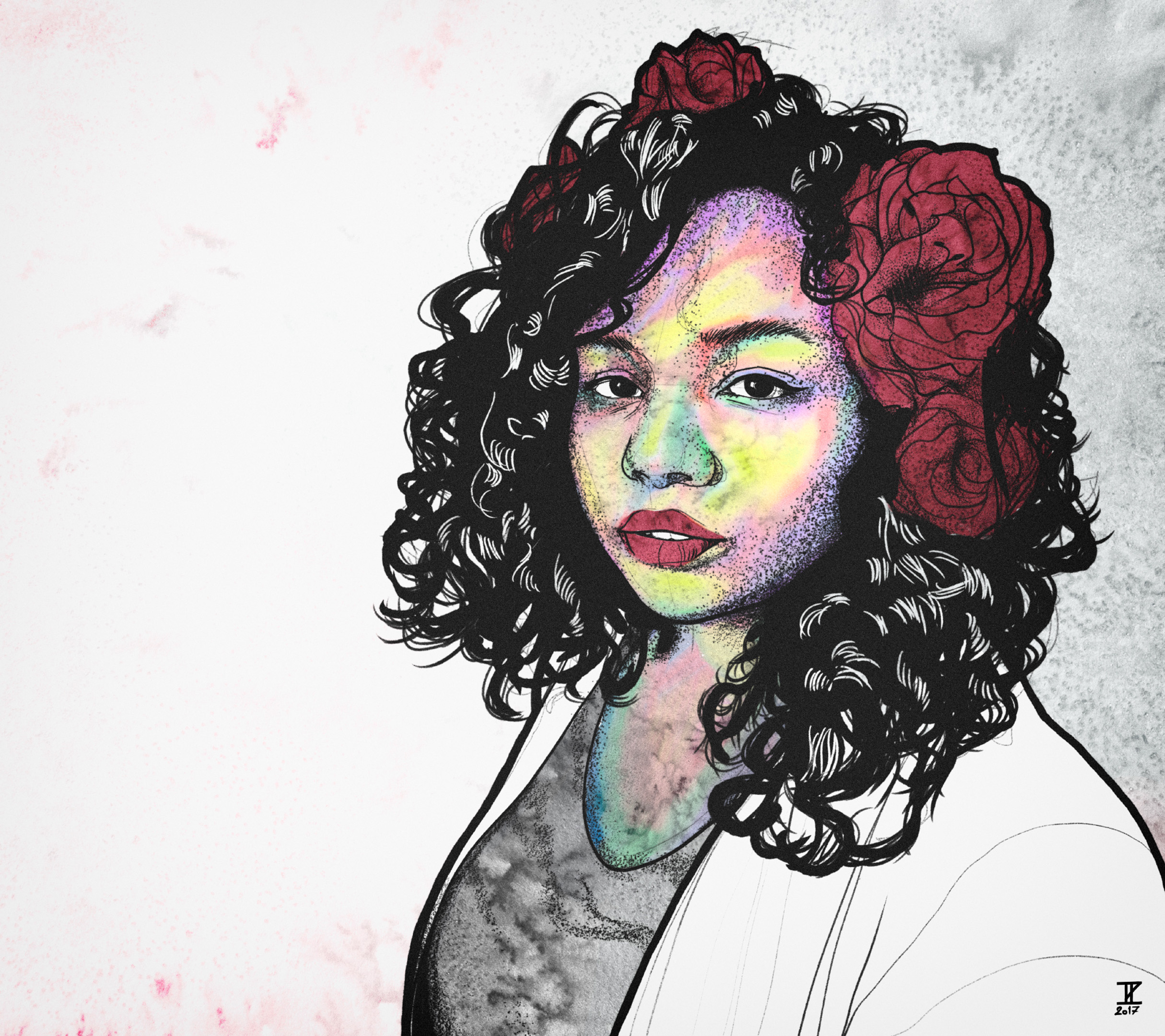 The girl with red flowers